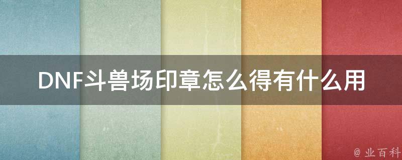 3、DNF斗兽场印章有什么用途呢?1,获得印
